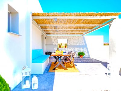 You can reach the place by car, ATV, Scooter, taxi, shuttle services or by bus (more information will be sent to you). Kamari is 20 minutes walking distance, 4 min by car.