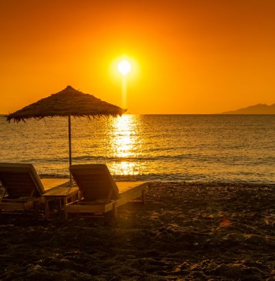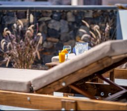 The amazing black beach of Agia Paraskevi -Kamari is one of the most famous in Santorini. Overlooking the East you can enjoy an amazing Sunrise and the nearby islands of the Aegean Sea (Amorgos and Anafi). Private Parking and Sunbeds for our guests.