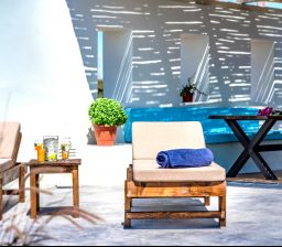 Blue Magic Seaside Villas is a complex of 3 Villas.Each Villa has a private balcony in the yard/patio.The beach in front of the Villas is equipped with sunbeds and umbrellas for our guests.