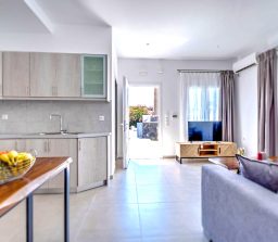 in front of the Villas. The space of the Villa is 40sq meters with 1 large double bed and 2 sofa beds. Bedroom, Living room & Kitchen and a bathroom. Accommodation for up to 4 persons.